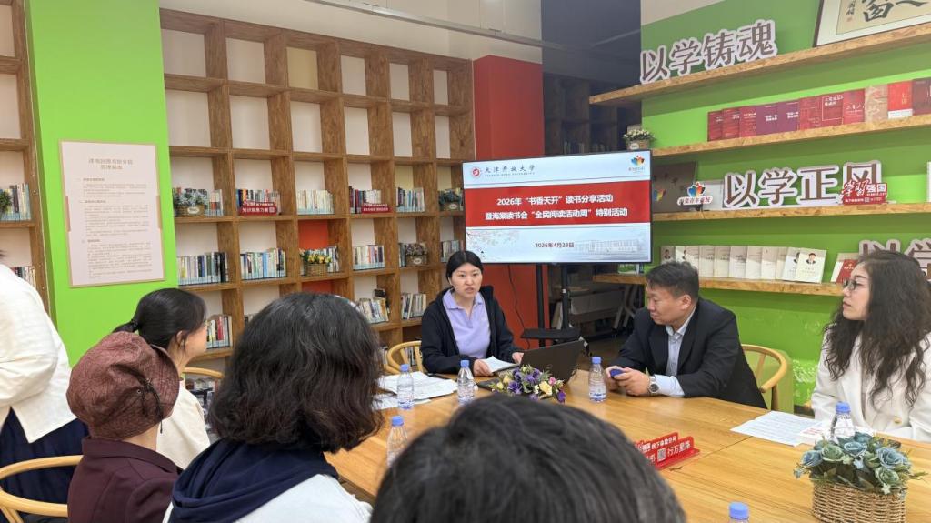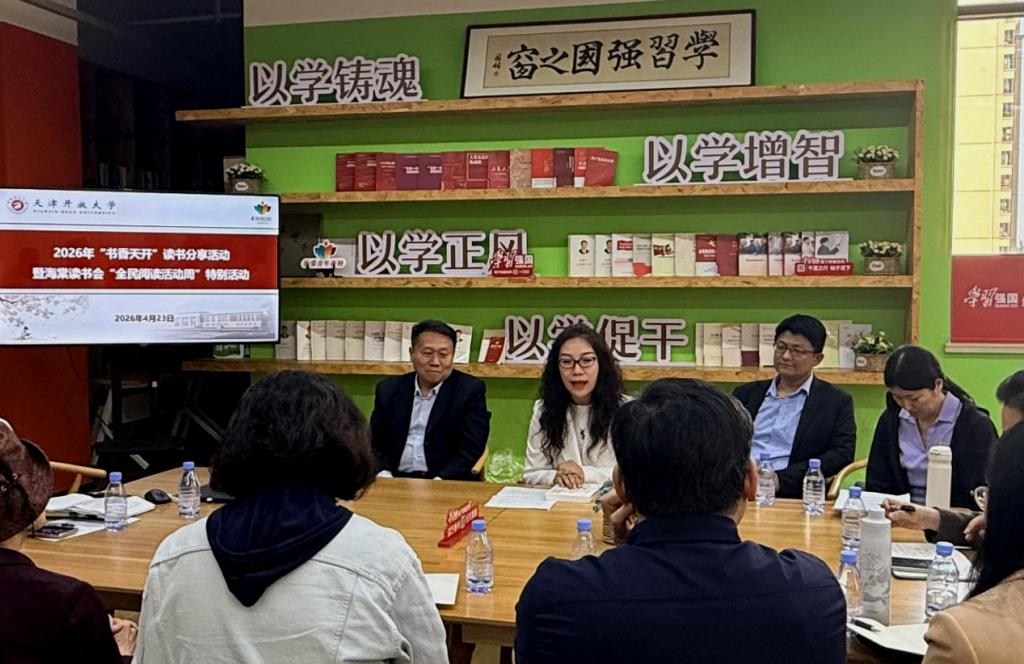 本周是我国首个法定“全民阅读活动周”,4月23日是世界读书日。4月23日下午,在景新花园社区“学习强国”线下体验空间,我校与津南区海棠街道联合举办2026年“书香天开”读书分享活动暨海棠读书会“全民阅读活动周”特别活动。津南区海棠街党工委副书记、办事处主任李玮,津南区海棠街纪工委书记张艳阳和我校师生代表、社区居民齐聚一堂,以书会友、共沐书香,推动全民阅读走深走实。