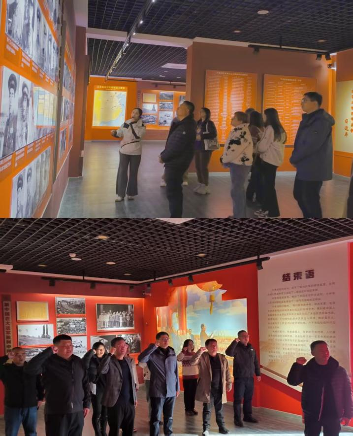 红色教育铸初心,铮铮誓言砺前行。下午,活动进入红色教育阶段。各支部党员一同前往别山镇孟家楼村,参观了平津战役精品展览馆。在讲解员生动的叙述中,那段波澜壮阔的革命历史画卷徐徐展开。通过详实的史料和文物,党员们深刻认识到平津战役作为解放战争“三大战役”收官之战的重大战略意义,深切缅怀了革命先辈们为解放事业不畏牺牲、英勇奋斗的丰功伟绩。这场伟大胜利的辉煌篇章,深深震撼了每一位党员的心灵,为大家上了一堂深刻的理想信念教育课。