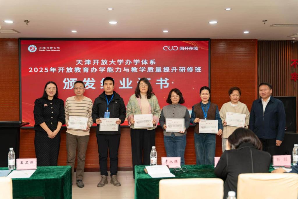 为巩固系统办学评估成果,精准提升体系队伍能力,2025年11月17日至22日,由天津开放大学主办、国开在线教育科技有限公司承办的“天津开放大学办学体系2025年开放教育办学能力与教学质量提升研修班”在北京、石家庄两地举办。来自体系内各单位的校领导、主任及骨干教师近40人参加培训。