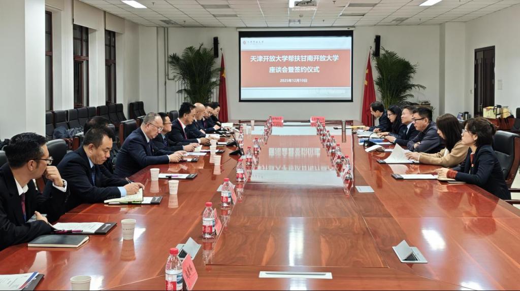 龙布对天津开放大学充分发挥自身优势,倾力帮助甘南州开放大学表示感谢,对下一步帮扶工作提出了需求。甘南州开放大学校长罗勇与我校就后续合作帮扶的工作思路进行了深入交流。