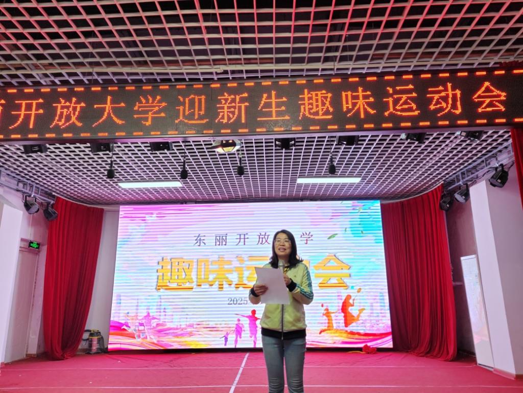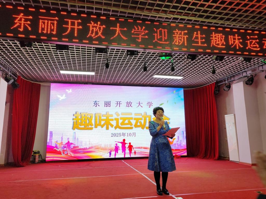 副校长王桂芝为开幕式致辞。她代表学校全体师生向怀揣梦想前来求学的 2025 级新生表示热烈的欢迎,详细介绍了东丽开放大学“深耕终身教育、服务全民学习”的办学理念。同时,她寄语新生:“开放大学是知识的殿堂,更是成长的舞台,希望同学们以此次运动会为起点,在求知路上勤学不辍,在集体中凝心聚力,将运动中锤炼的坚韧意志与协作精神融入学习生活,在终身学习的征程中书写精彩人生。”